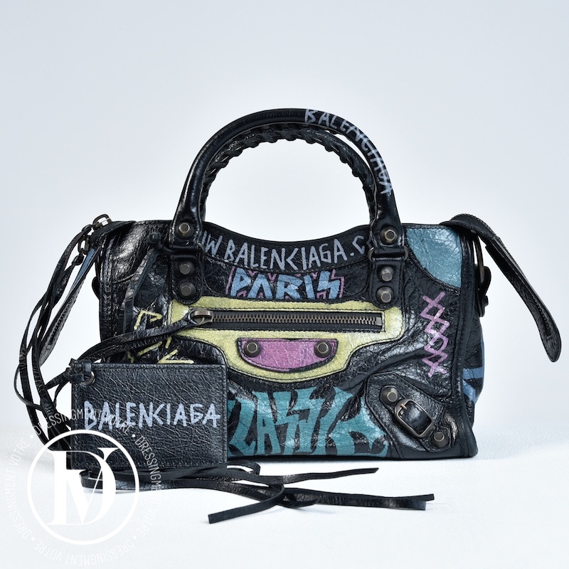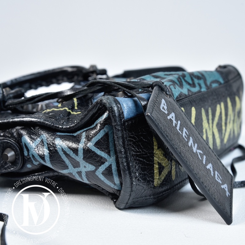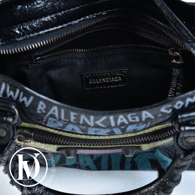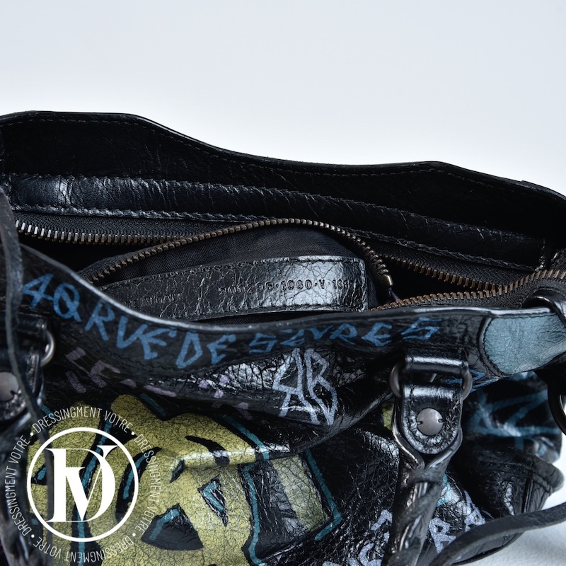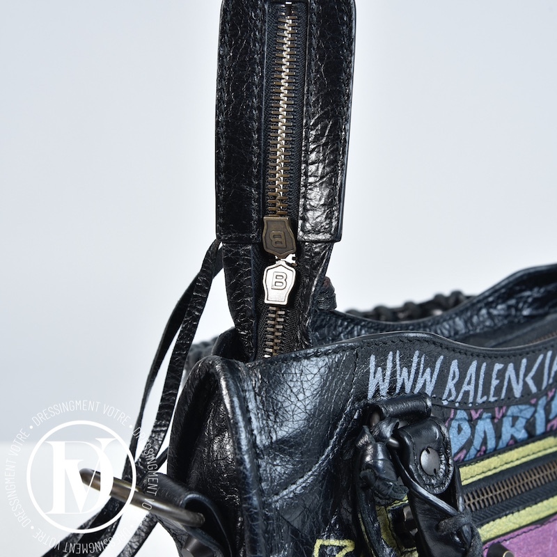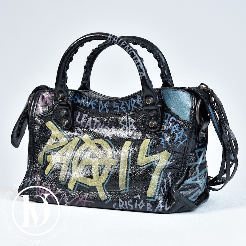Découvrez notre Sac City Graffiti small en cuir noir - Balenciaga dans la catégorie Sac porté épaule de luxe de seconde main pour femmes élaboré par la grande maison de luxe Balenciaga