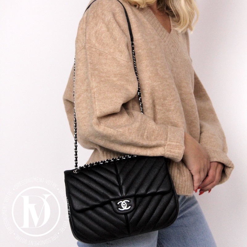 Dénichez notre Sac classique à rabat en cuir caviar noir - Chanel dans la catégorie Sac porté épaule de luxe de seconde main pour femmes élaboré par la grande maison de luxe Chanel