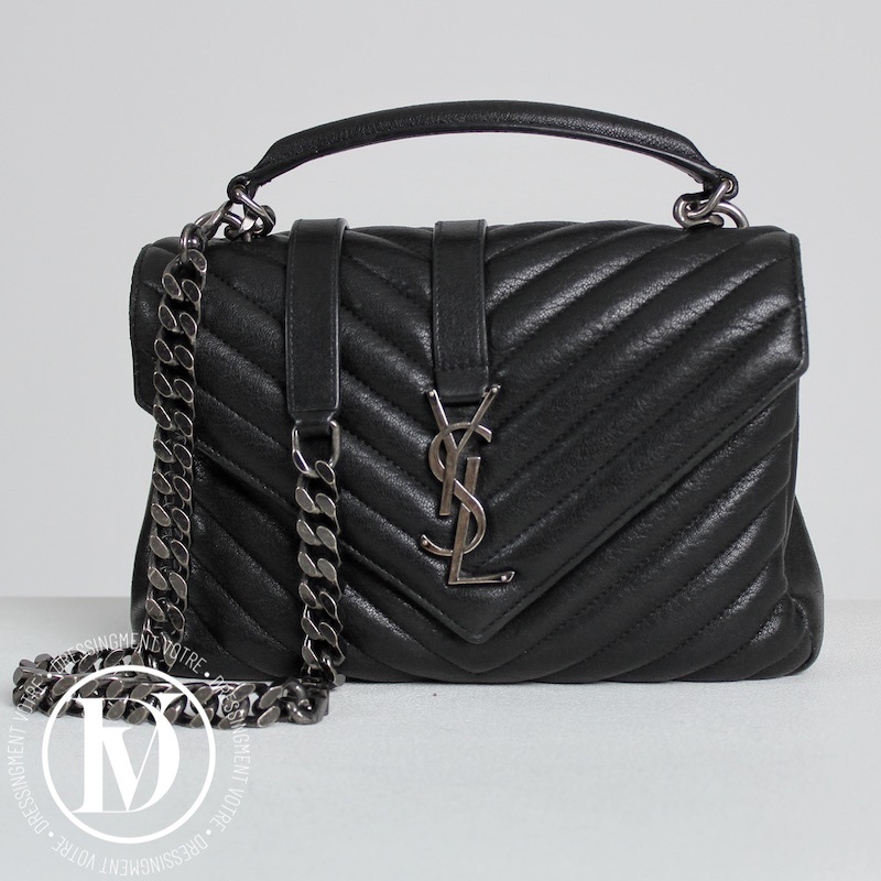 Dénichez notre Sac Collège médium cuir noir - Saint Laurent dans la gamme Sacs portés main luxe occasion pour femmes créé par la grande maison de luxe Saint Laurent