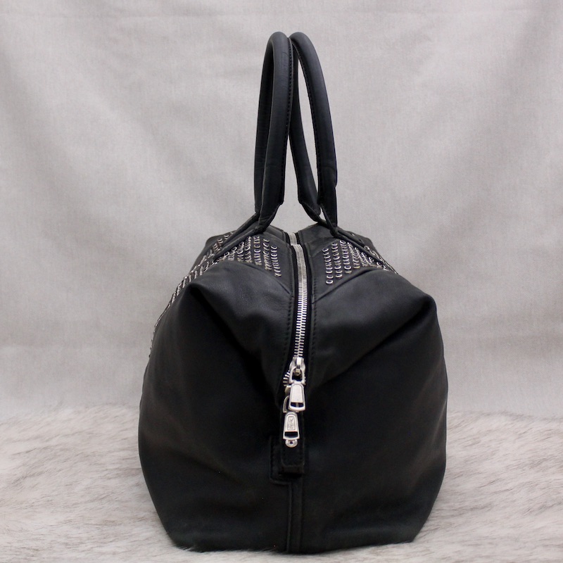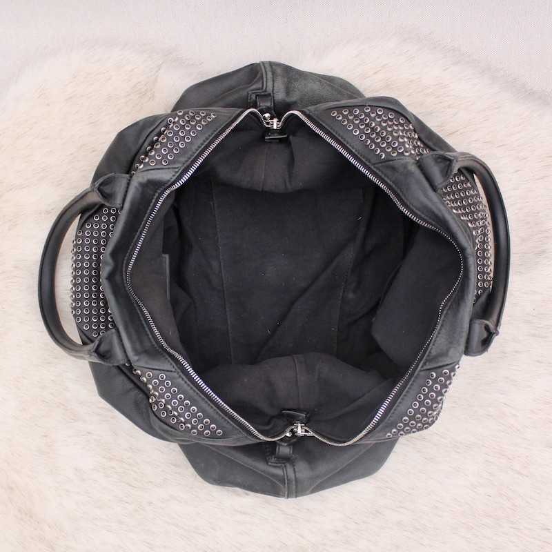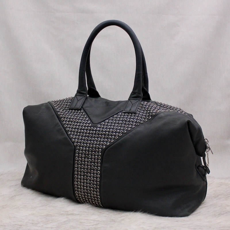 Dénichez notre Sac Easy en cuir noir et spikes - Saint Laurent dans la gamme Sacs portés main luxe occasion pour femmes créé par la grande maison de luxe Saint Laurent