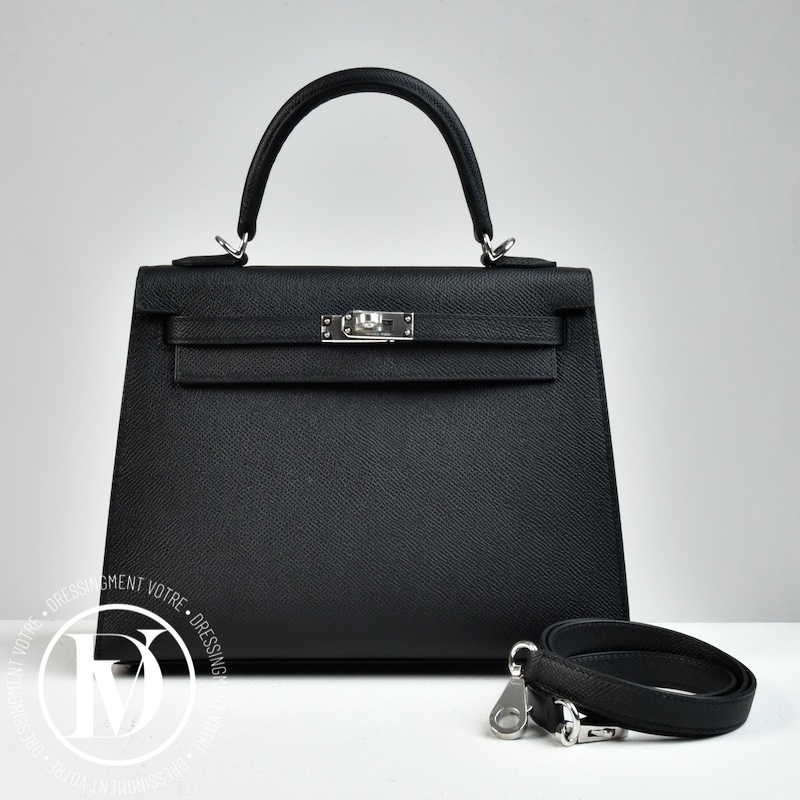 Découvrez notre Sac Kelly 25 cuir epsom noir - Hermès dans la gamme Sacs portés main luxe occasion pour femmes créé par la grande maison de luxe Hermès