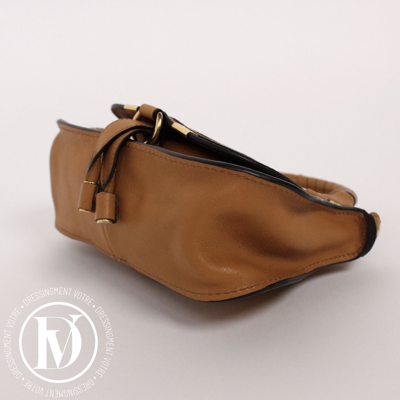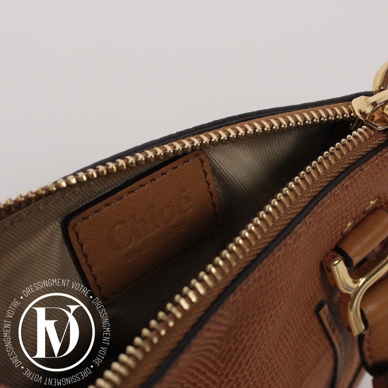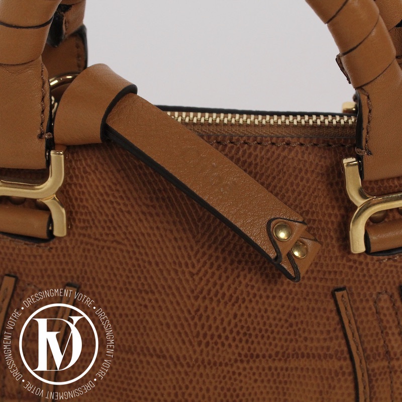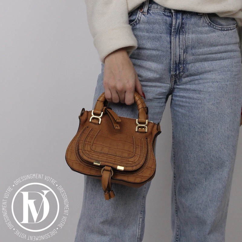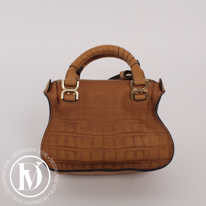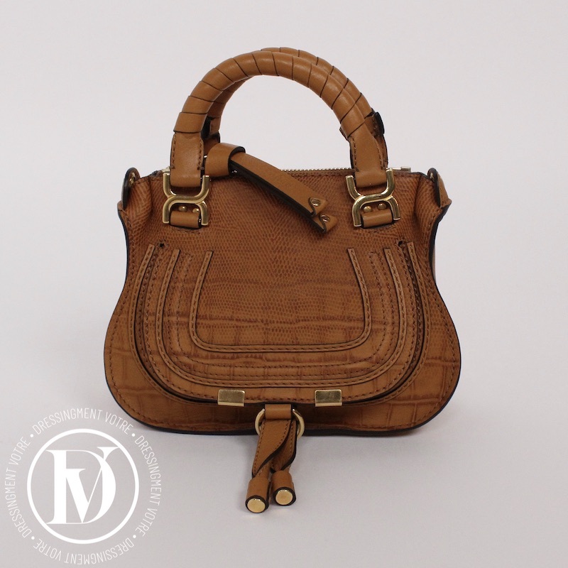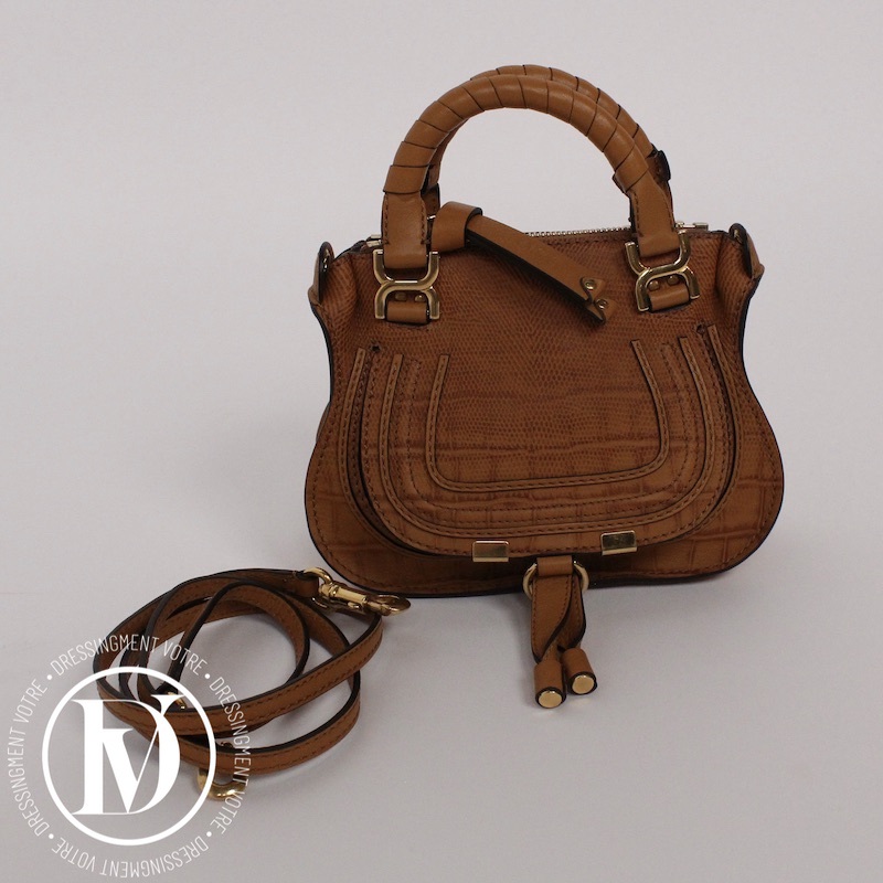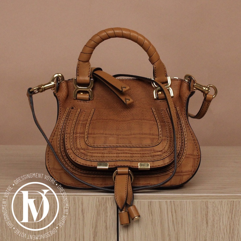 Dénichez notre Sac mini Marcie en cuir effet lezard/croco camel - Chloé dans la gamme Sacs portés main luxe occasion pour femmes créé par la grande maison de luxe Chloé