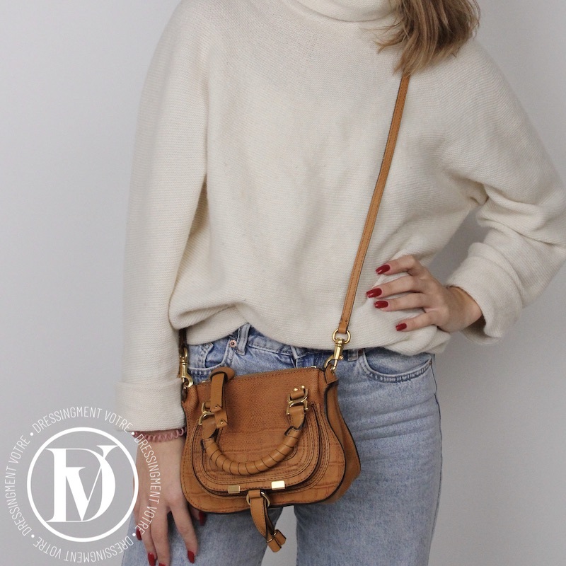 Sac mini Marcie en cuir effet lezard/croco camel – Chloé