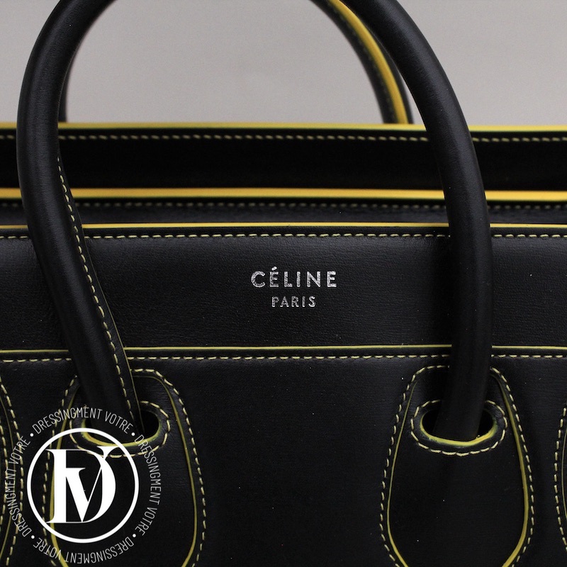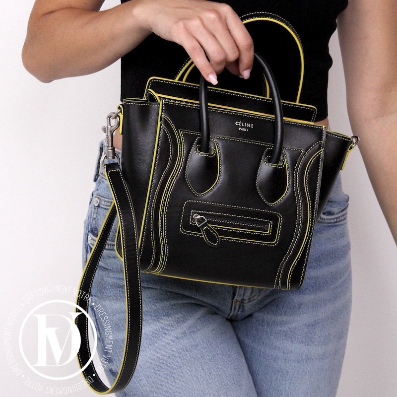 Sac Nano Luggage en cuir noir et jaune – Céline