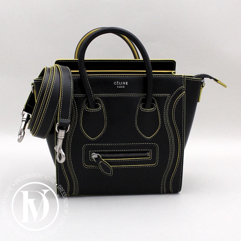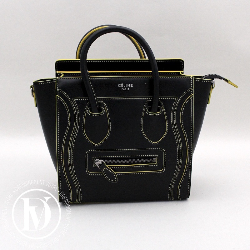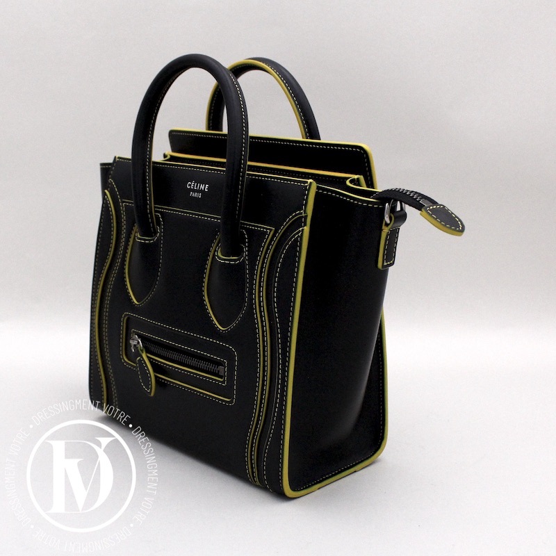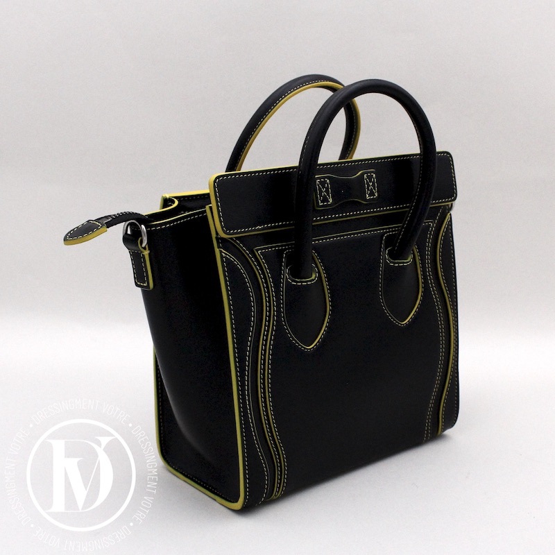 Dénichez notre Sac Nano Luggage en cuir noir et jaune - Céline dans la catégorie Sac porté épaule de luxe de seconde main pour femmes élaboré par la grande maison de luxe Céline