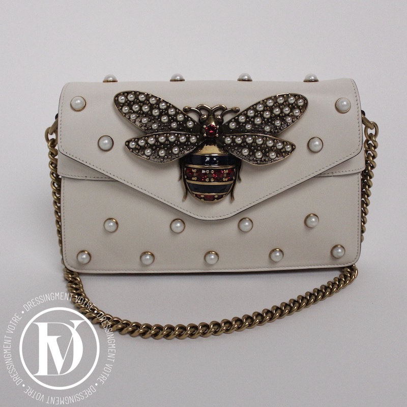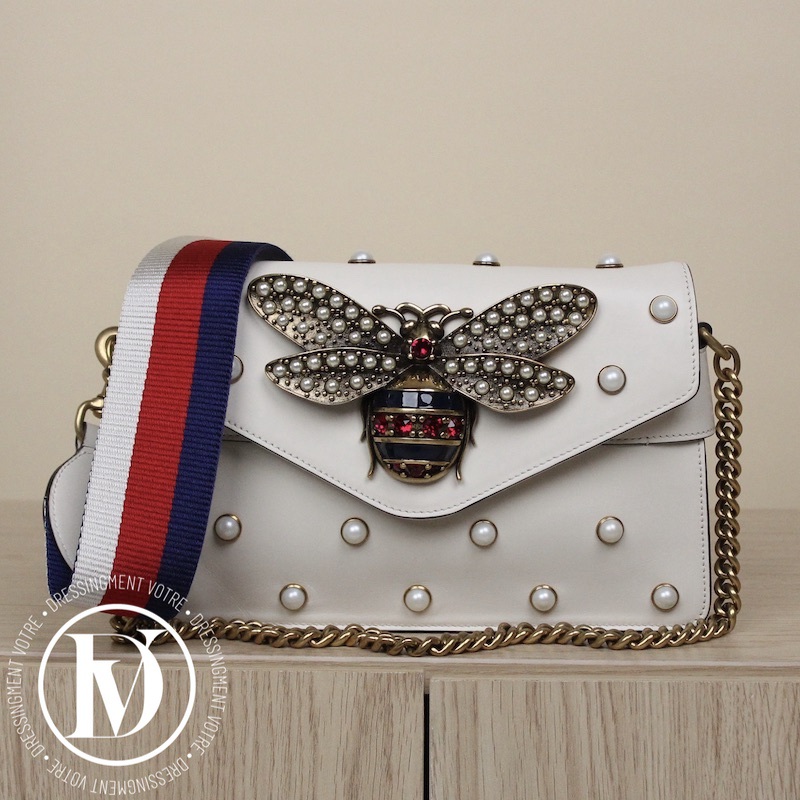 Dénichez notre Sac Queen Margaret en cuir blanc - Gucci dans la catégorie Sac porté épaule de luxe de seconde main pour femmes élaboré par la grande maison de luxe Gucci