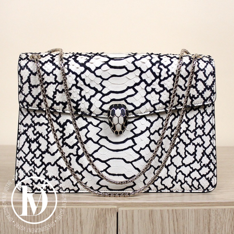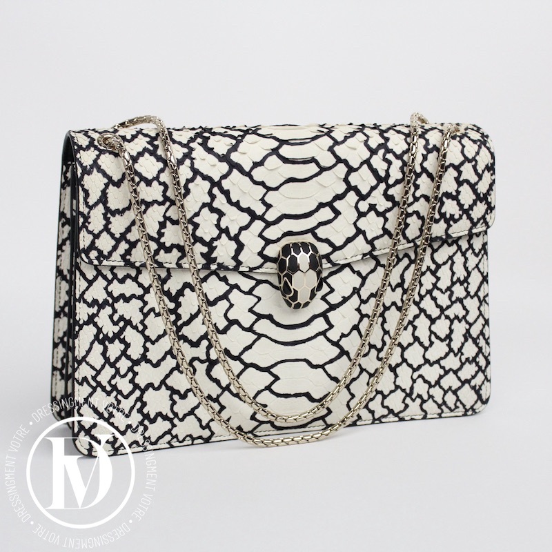 Sac Serpenti en python noir et blanc – Bulgari