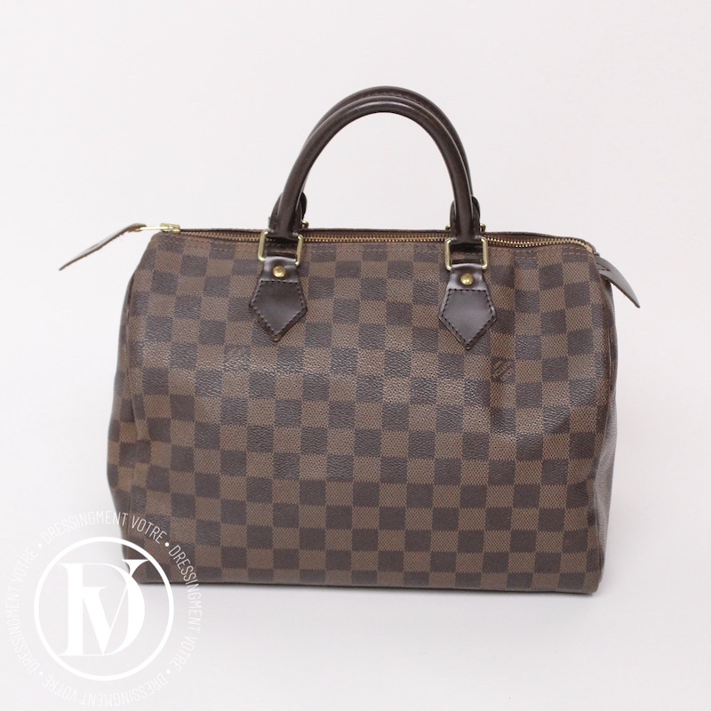 Découvrez notre Sac Speedy 30 en toile damier ébène - Louis Vuitton dans la gamme Sacs portés main luxe occasion pour femmes créé par la grande maison de luxe Louis Vuitton