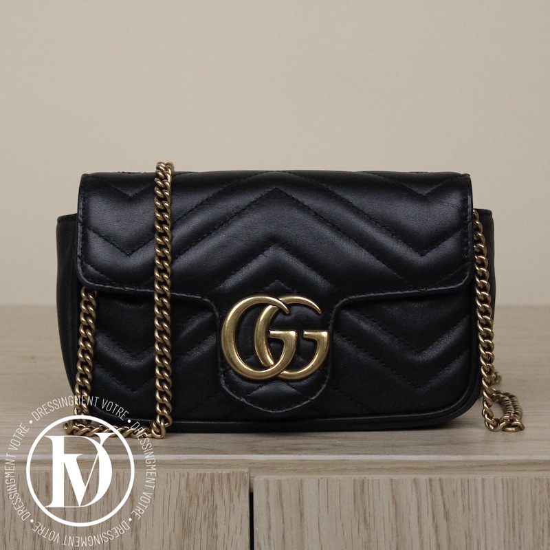 Découvrez notre Sac super mini Marmont en cuir noir - Gucci dans la catégorie Sac porté épaule de luxe de seconde main pour femmes élaboré par la grande maison de luxe Gucci
