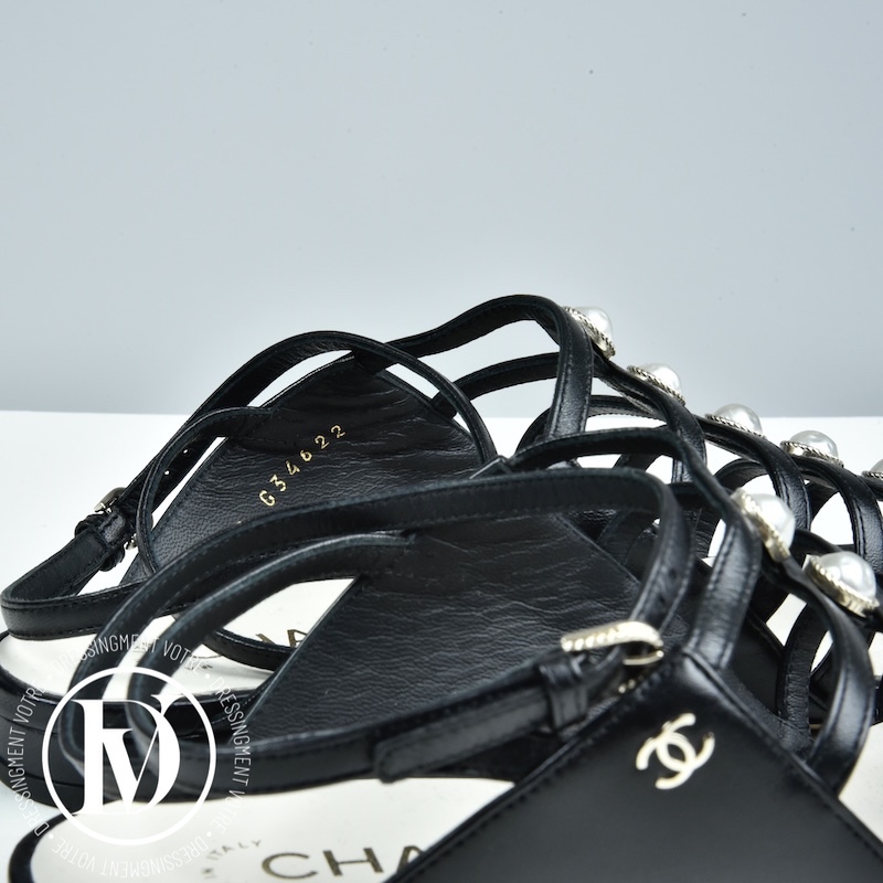 Sandales en cuir noir et perles p.38C - Chanel Dressingment Votre