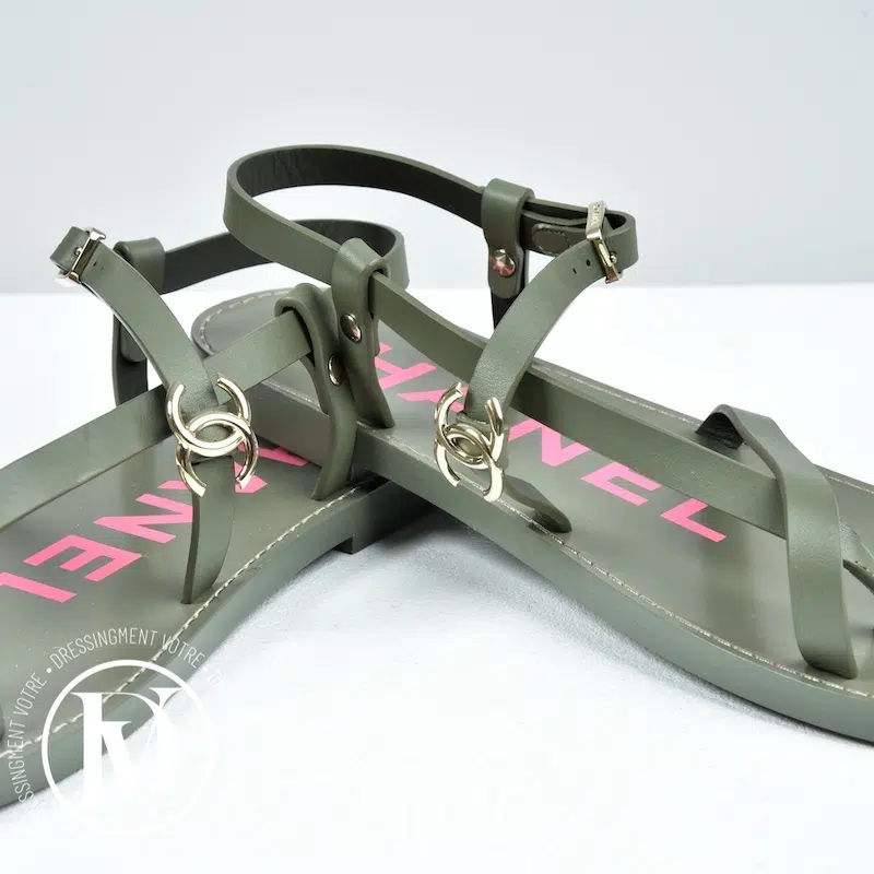 Appréciez notre Sandales Gladiator en cuir kaki p.37 - Chanel dans la catégorie Chaussure de luxe d’occasion pour femmes élaboré par la grande maison de luxe Chanel