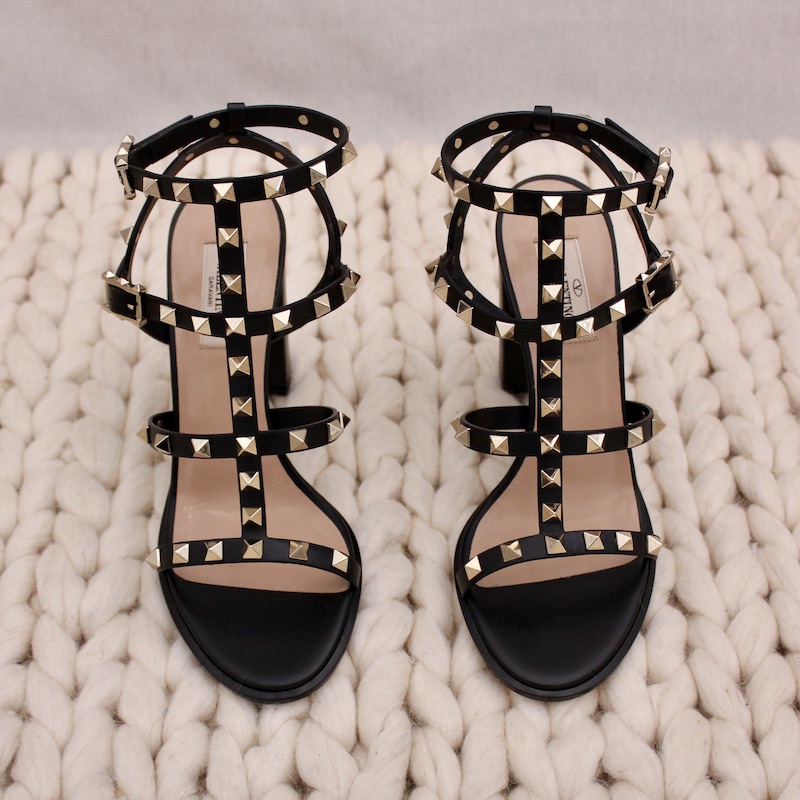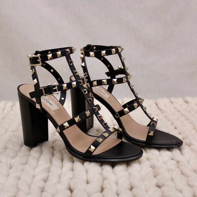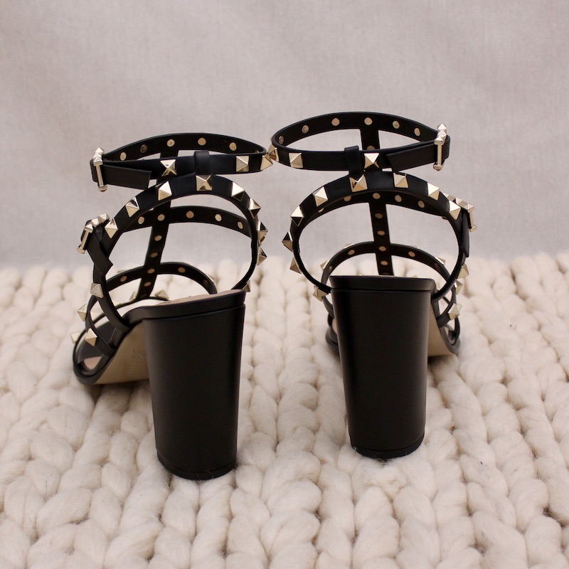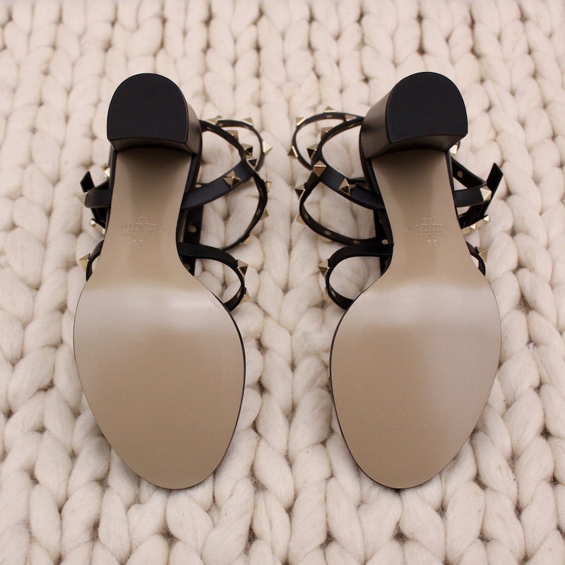 Découvrez notre Sandales Rockstuds en cuir de veau noir p.38 - Valentino dans la catégorie Chaussure de luxe d’occasion pour femmes élaboré par la grande maison de luxe Valentino