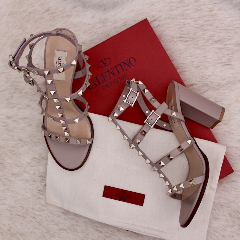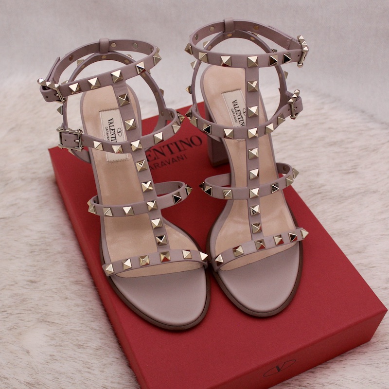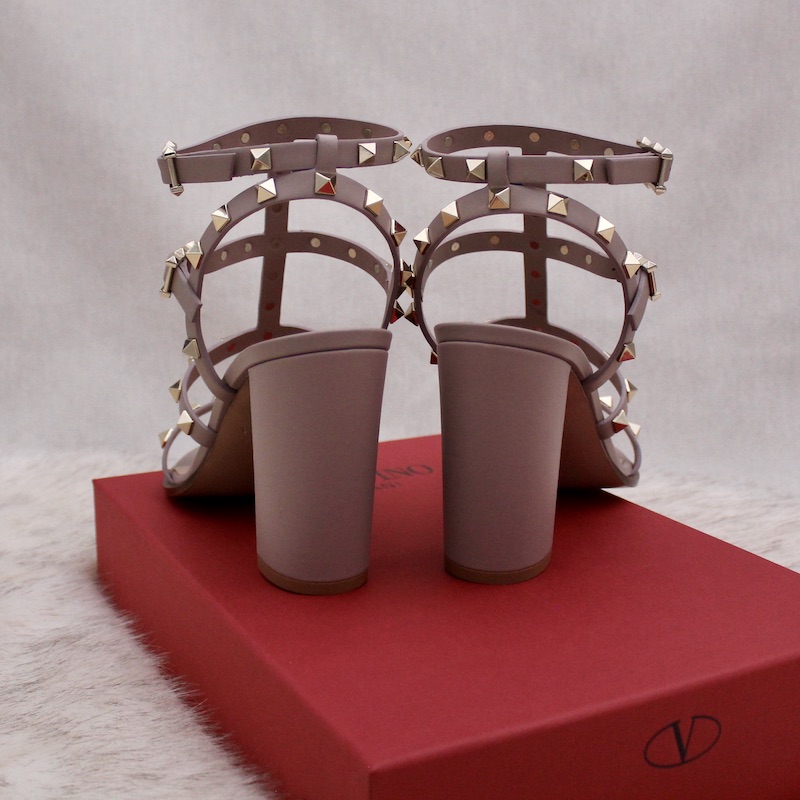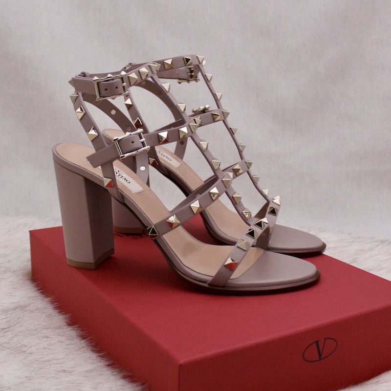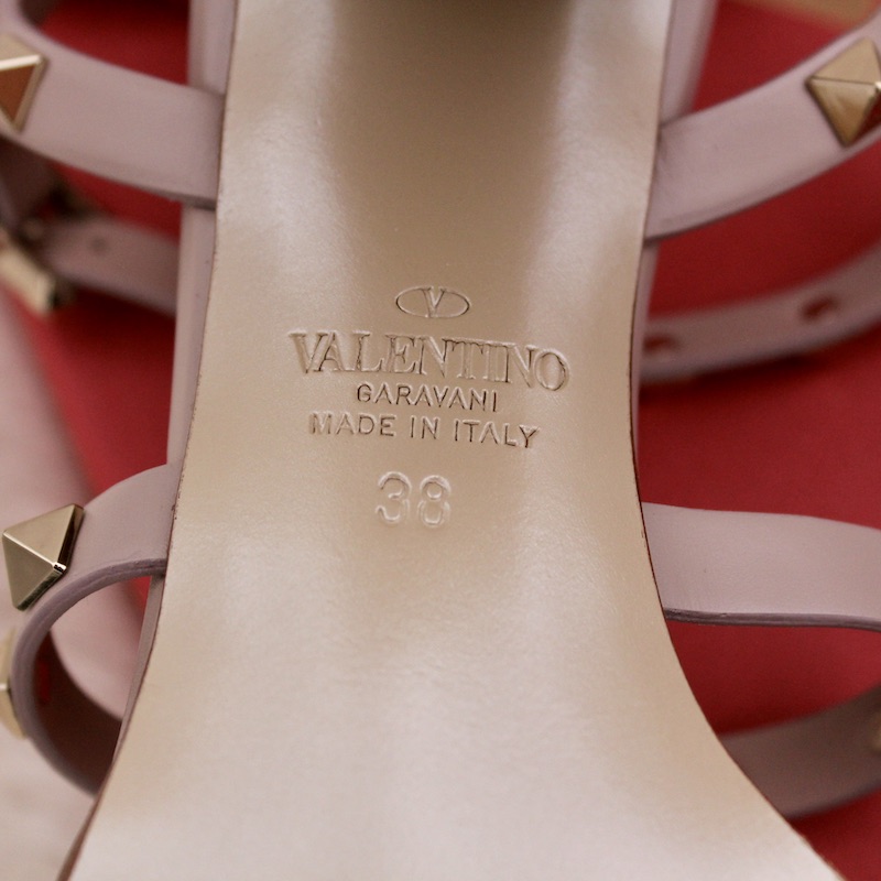 Découvrez notre Sandales Rockstuds en cuir de veau poudre p.38 - Valentino dans la catégorie Chaussure de luxe d’occasion pour femmes élaboré par la grande maison de luxe Valentino