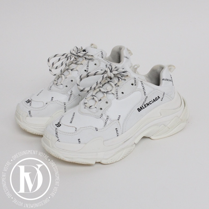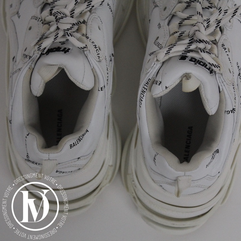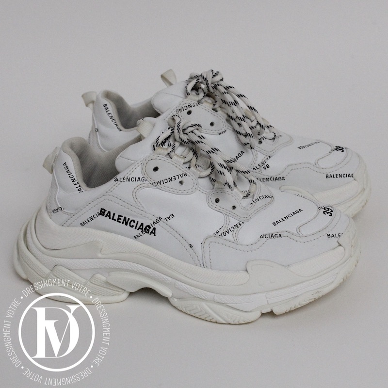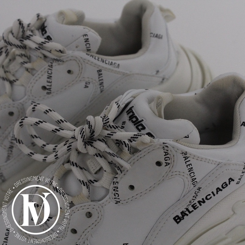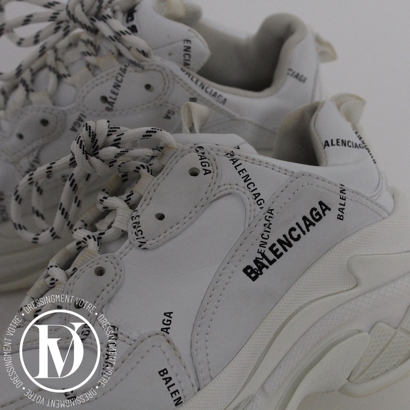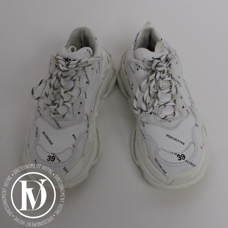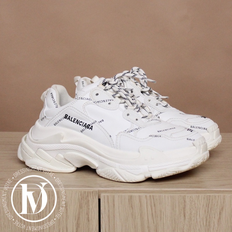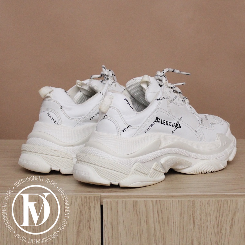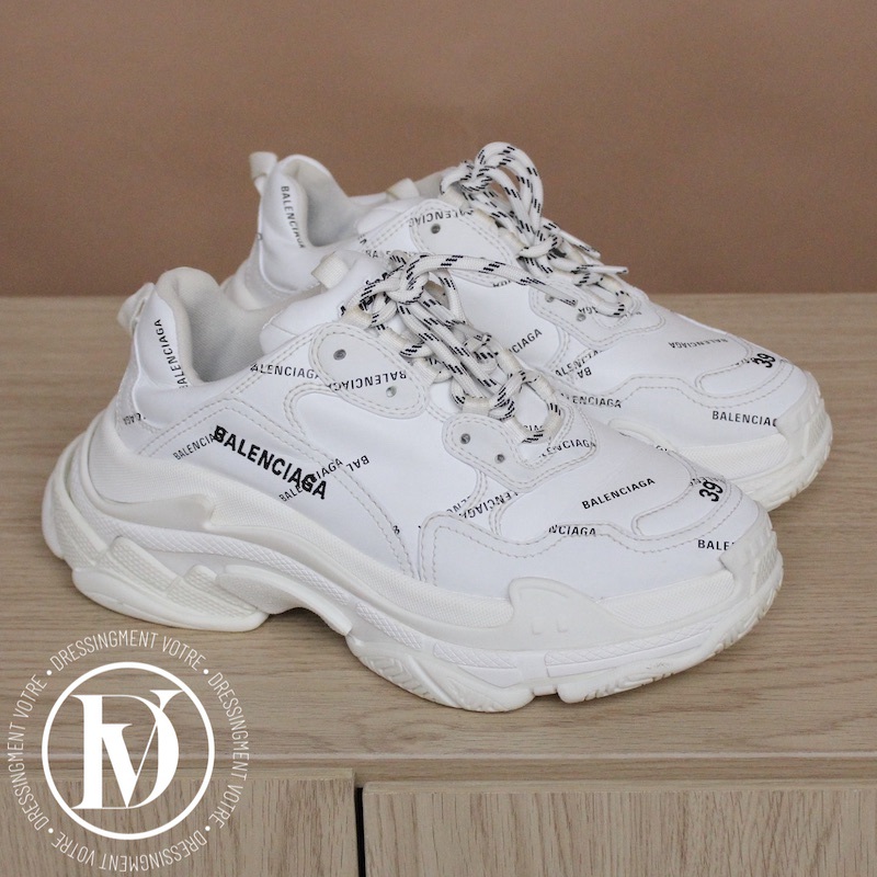 Découvrez notre Sneakers triple S en cuir et maille technique blanche p.39 - Balenciaga dans la catégorie Chaussure de luxe d’occasion pour femmes élaboré par la grande maison de luxe Balenciaga