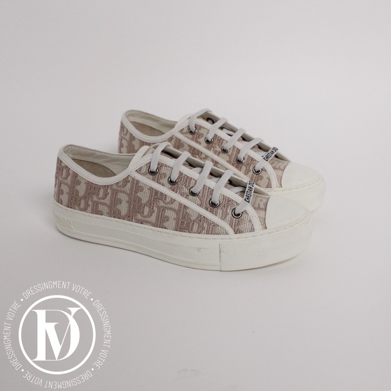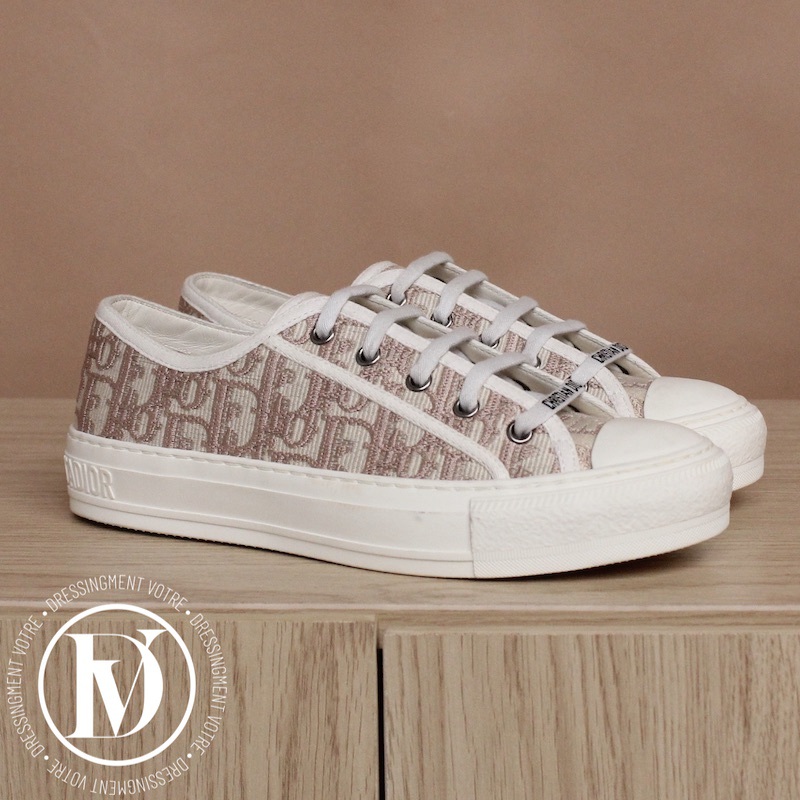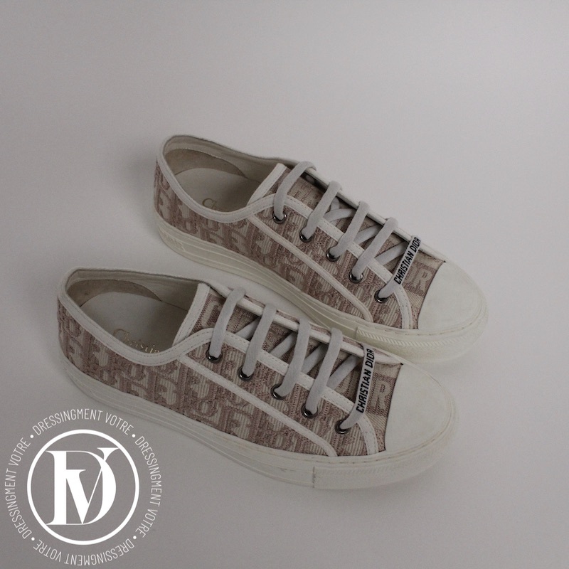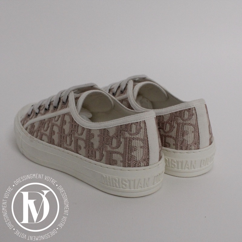 Dénichez notre Sneakers Walk'n'Dior en coton brodé nude p.37 - Dior dans la catégorie Chaussure de luxe d’occasion pour femmes élaboré par la grande maison de luxe Dior