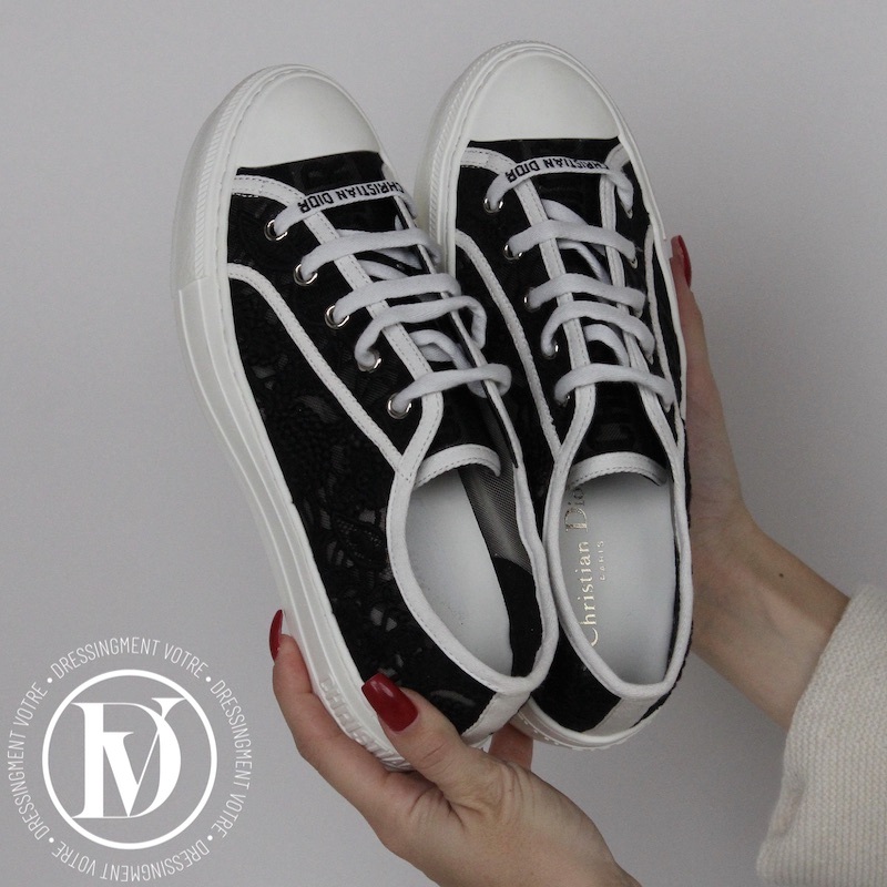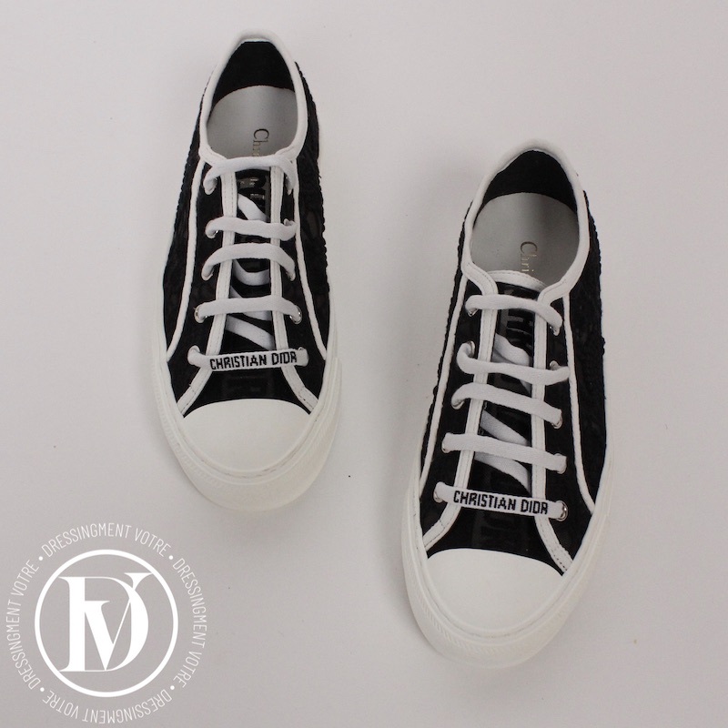 Appréciez notre Sneakers Walk'n'Dior en dentelle brodée noir p.37 - Dior dans la catégorie Chaussure de luxe d’occasion pour femmes élaboré par la grande maison de luxe Dior