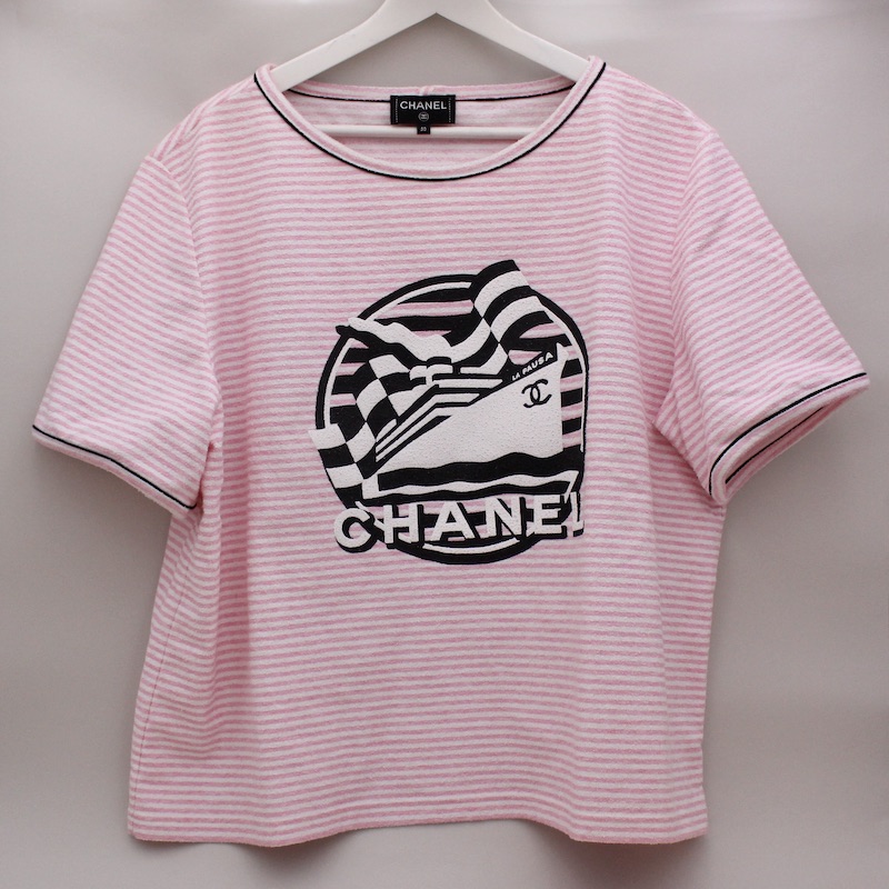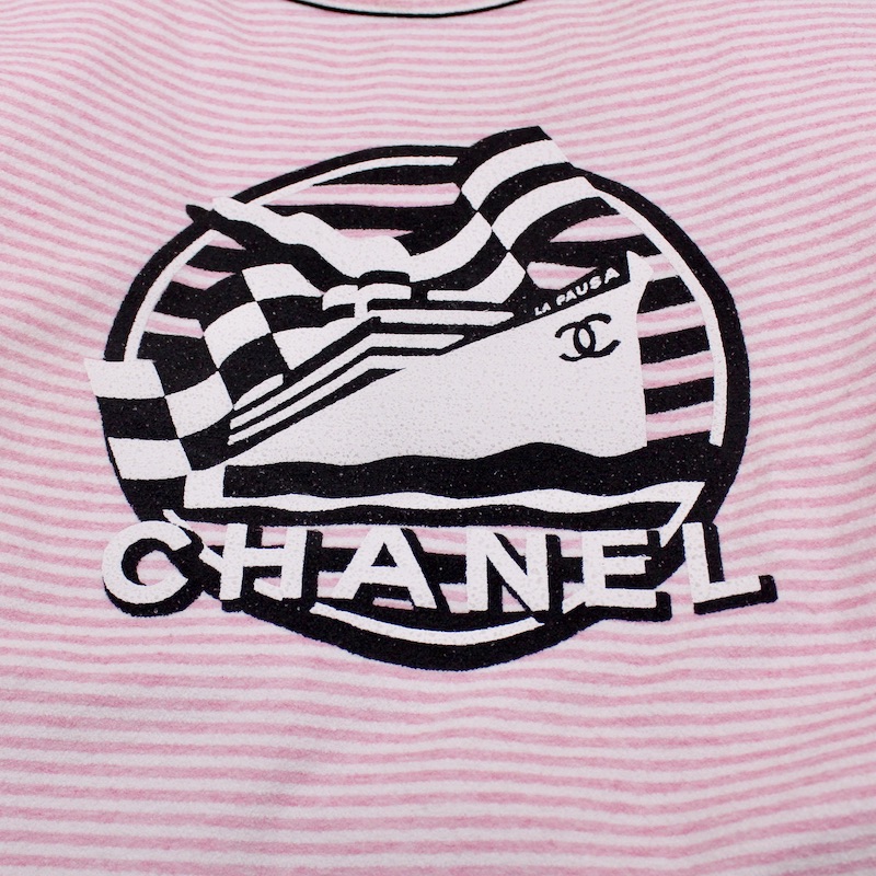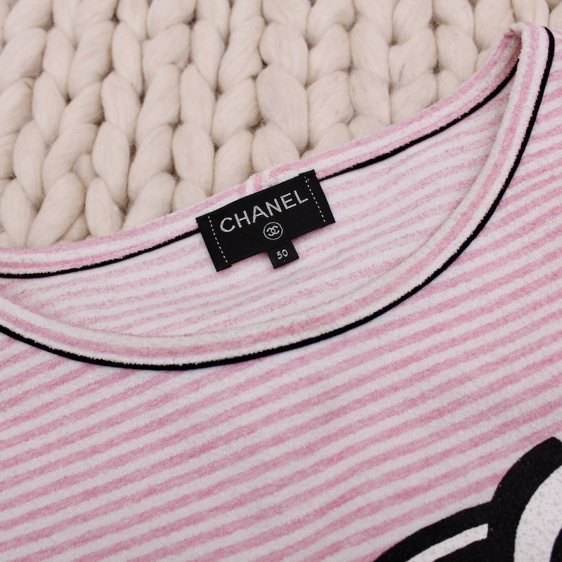 Appréciez notre T-shirt marinière "La Pausa" en tissu éponge rose t.50 - Chanel dans la gamme Tops créé par la grande maison de luxe Chanel