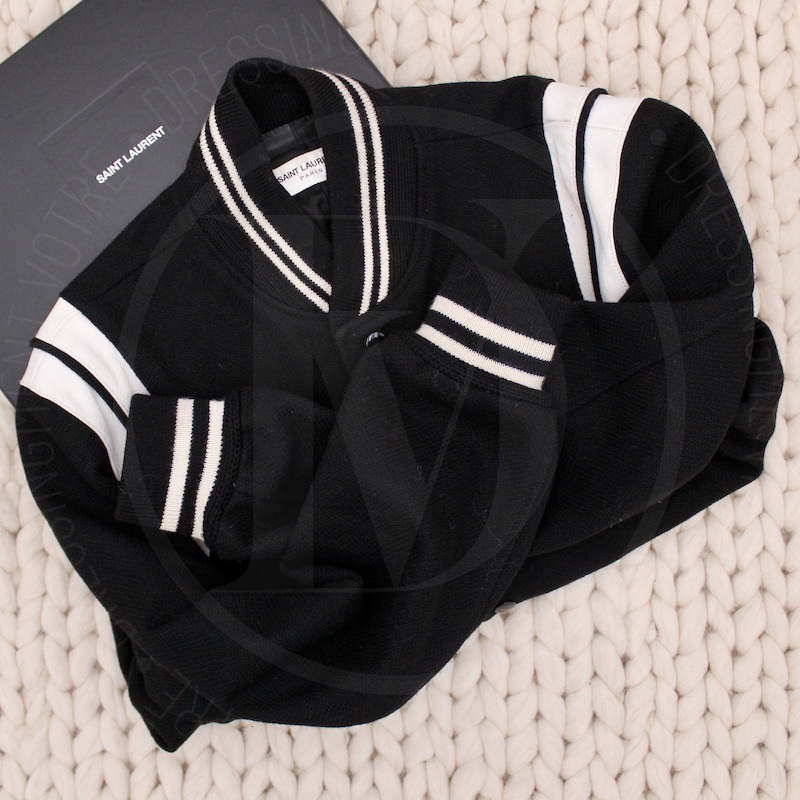 Découvrez notre Teddy en laine et cuir noir et blanc t.48 - Saint Laurent dans la gamme Yves Saint Laurent créé par la grande maison de luxe Saint Laurent