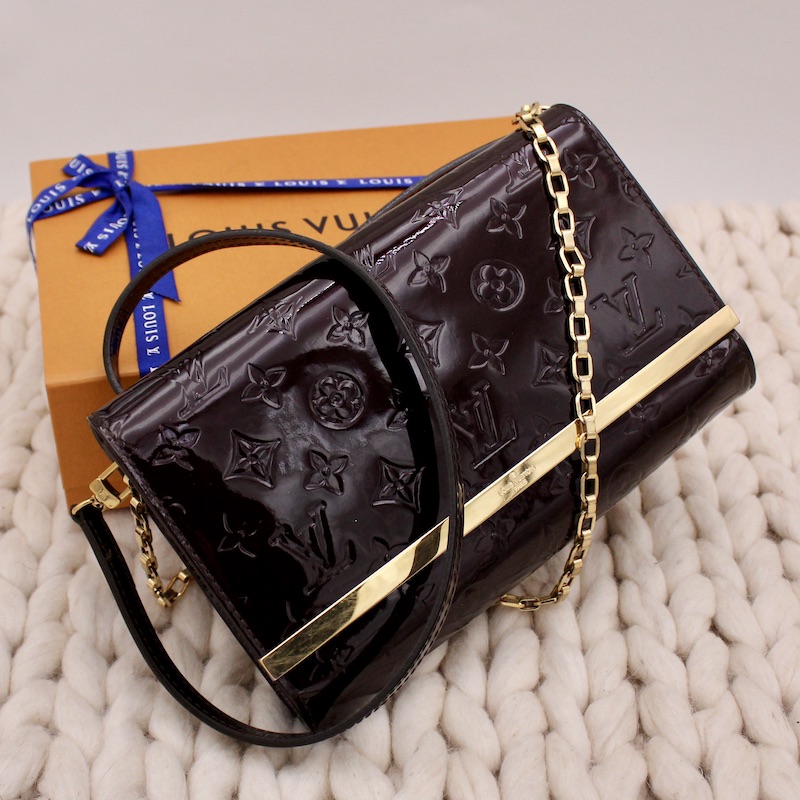 Découvrez notre Wallet on chain Ana en cuir monogram verni amarante - Louis Vuitton dans la catégorie Sac porté épaule de luxe de seconde main pour femmes élaboré par la grande maison de luxe Louis Vuitton