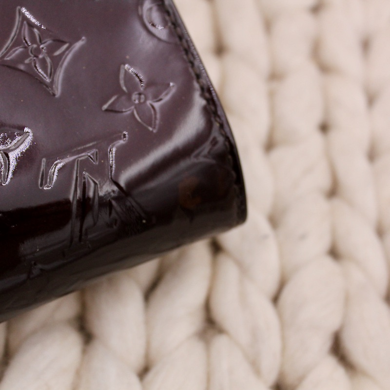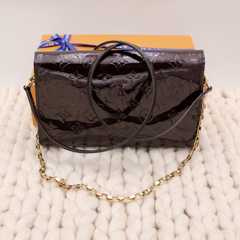 Wallet on chain Ana en cuir monogram verni amarante – Louis Vuitton