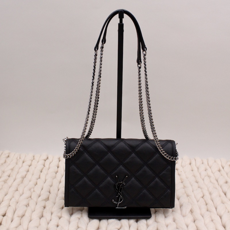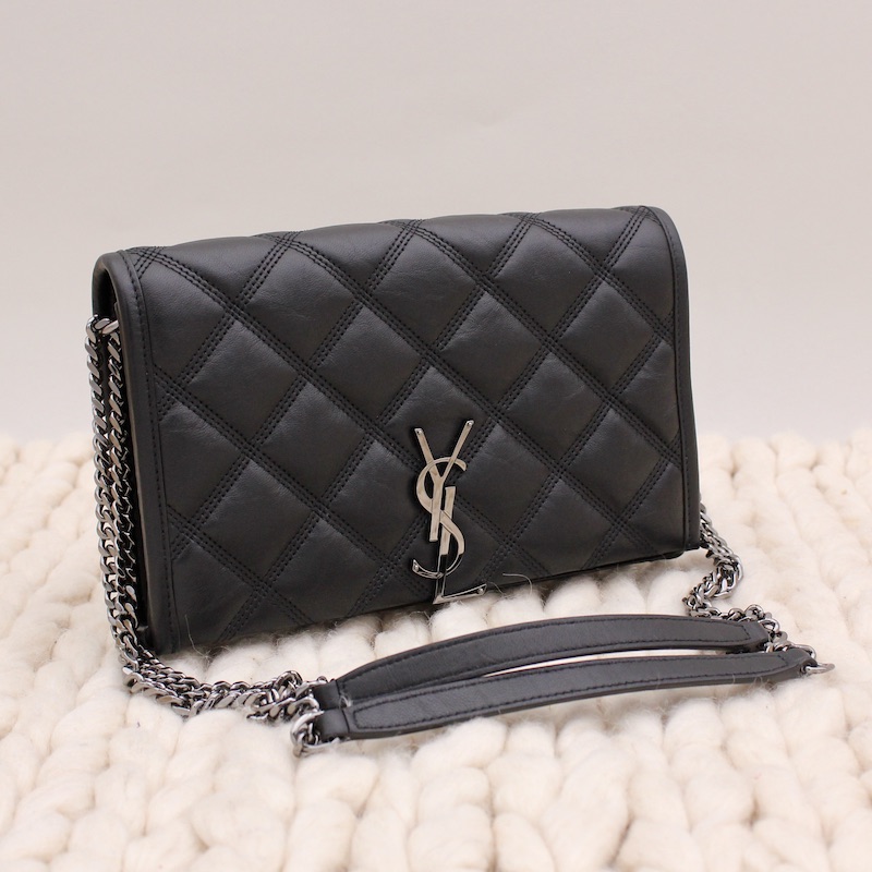 Achetez notre Wallet on Chain Becky en cuir froissé noir - Saint Laurent dans la catégorie Sac porté épaule de luxe de seconde main pour femmes élaboré par la grande maison de luxe Saint Laurent