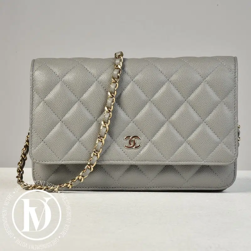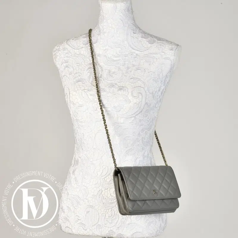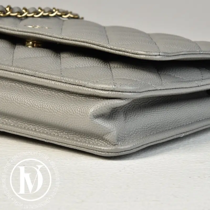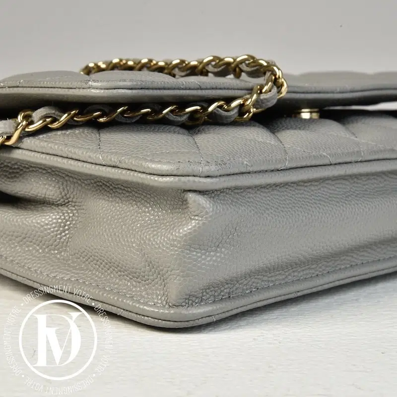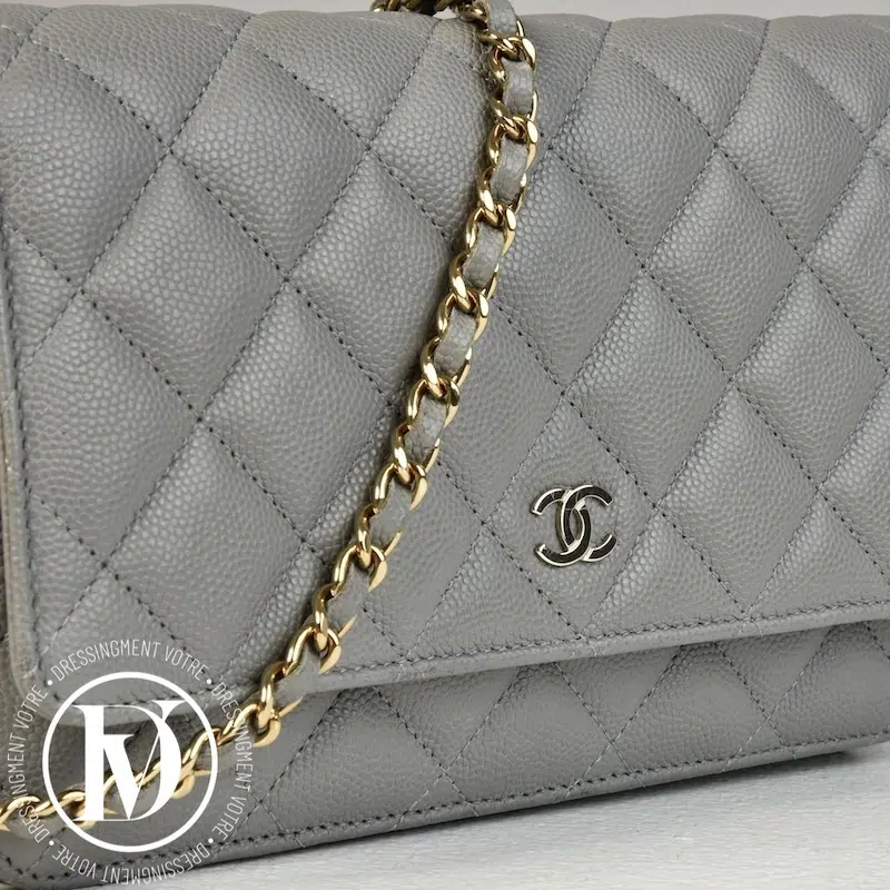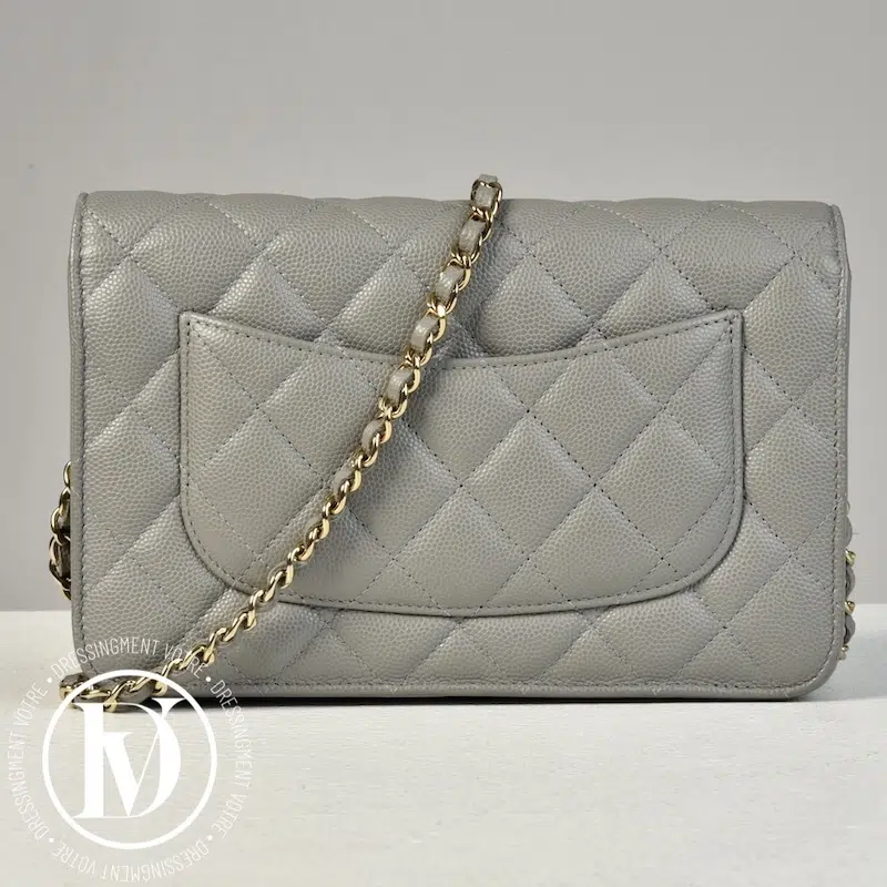 Wallet On Chain (WOC) cuir caviar gris – Chanel